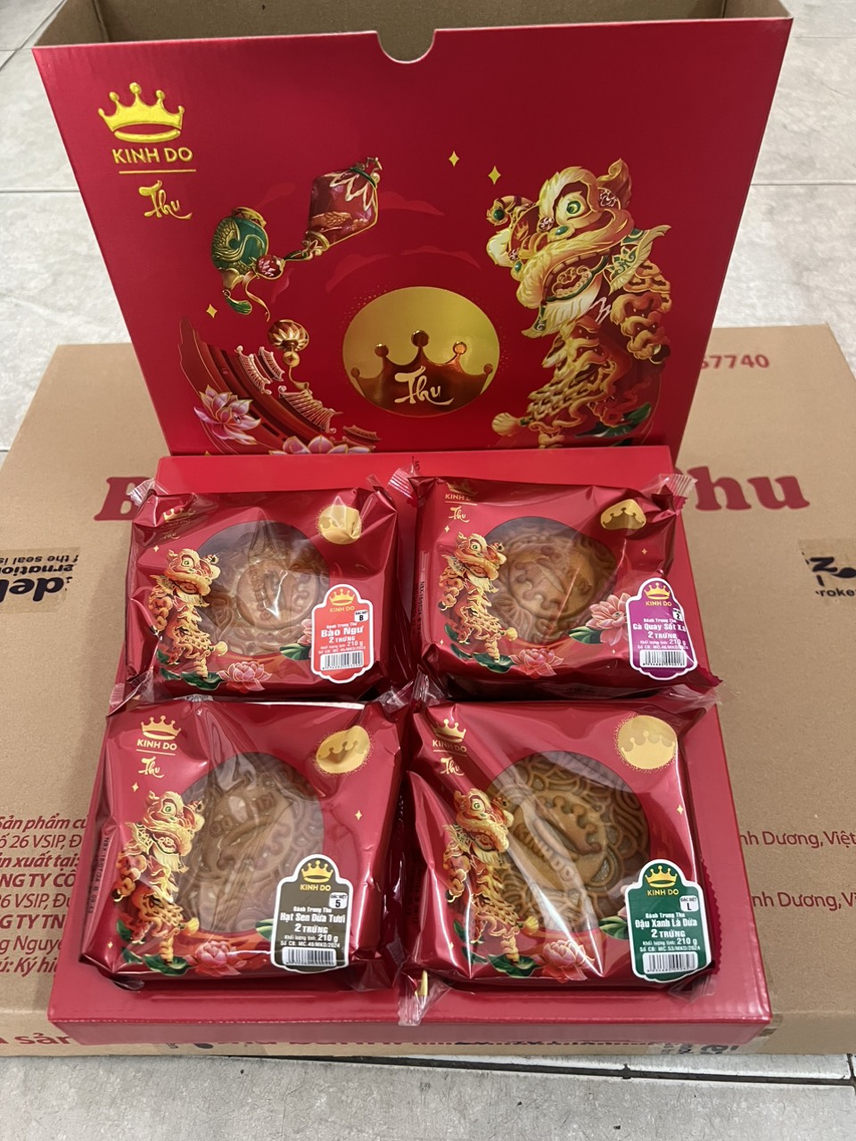 Bánh Trung Thu Kinh Đô COMBO_KĐ08 hộp 4 bánh 1 B_Bào ngư 2 trứng 210gr 2 2_Gà quay sốt X.O 2 trứng 210gr 3 5_Hạt Sen Dừa tươi 2 trứng 210gr 4 L_Đậu xanh lá dứa 2 trứng 210gr